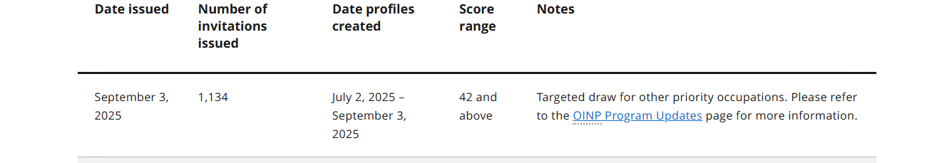 本次一共邀请了1893人,其中国内申请人比较关心的海外工人类别邀请了1134人,最低邀请分数只有42分。42分这个分数按目前安省EOI的打分表来看,只要满足申请人持有大多外地区的雇主TEER2/3的优先岗位offer,并且已经办理了工签登陆,语言CLB 7以上大概率就可以获邀,甚至连工作经验都不需要积累。