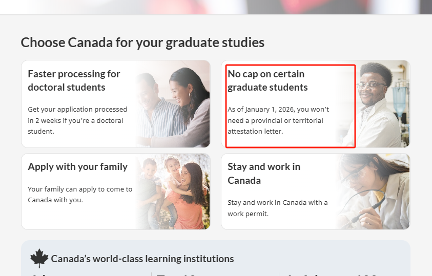 但就在近日,加拿大又出台了一项针对留学的新通道,即申请加拿大指定院校(DLI)硕士和博士的学签申请人不计入上述15w5的学签配额中。换句话说硕士和博士将不受配额的限制并且可以豁免PAL/TAL,这可谓是加拿大一次很大的手笔。