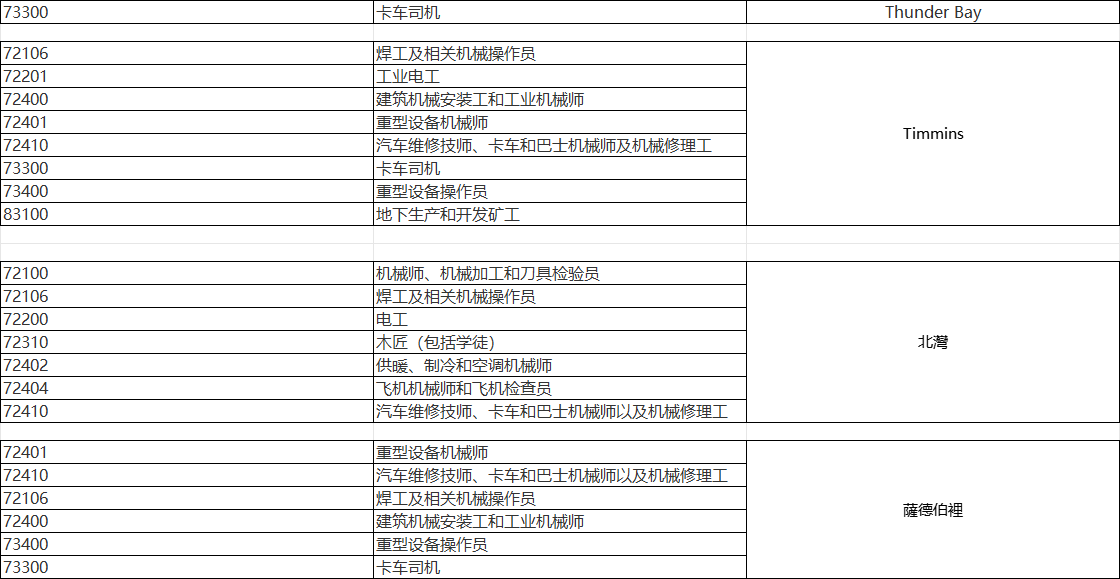 当然除了安省小镇外,RCIP还有很多别的省份小镇也有符合技工noc的岗位列表,我这里就不一一复述了,有兴趣的小伙伴可以后台私信我们。