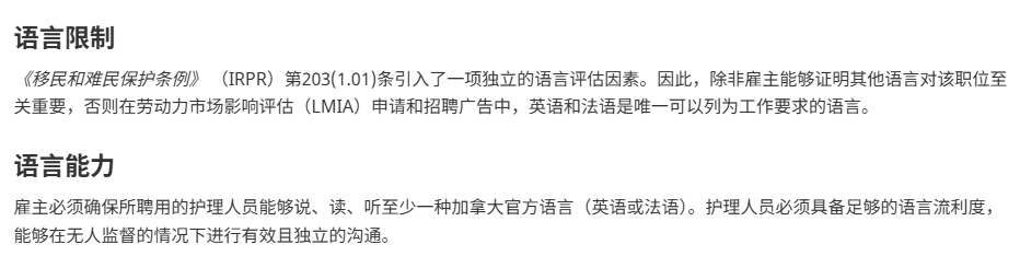 但随着本次的更新,看护岗位在LMIA申请中新增了更明确、实质性的语言能力要求。核心内容包括: