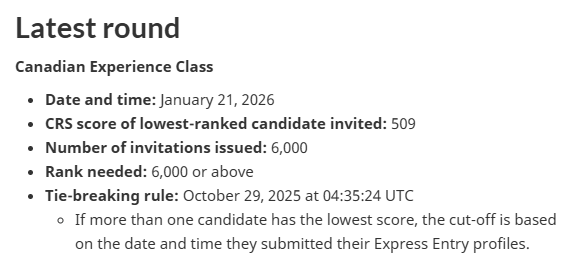 就在上周的节目中,我们重点分析了当前加拿大EE通道中,CEC(Canadian Experience Class,加拿大经验类)项目的最新走势。当时我们提到,在上一轮抽选中,加拿大移民局一次性邀请了8,000名候选人,最低邀请分数来到511分。基于这一抽选规模与频率,我们大胆预测:2026年年初CEC很有可能继续大范围抽选,且分数存在持续下行空间,在上半年有机会接近甚至跌破500分。