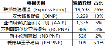 这些邀请中,最大部分来自联邦快速通道,并特别针对特定劳动力短缺领域,如医疗、法语人才、已有加拿大工作经验者及各省提名项目。