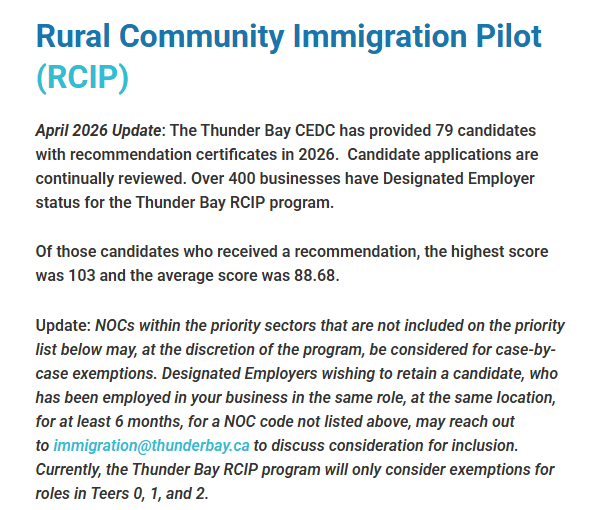 例如,某申请人担任市场经理,职位本身不属于优先职业,但如果其所在公司属于矿业、制造业等优先行业,仍可能符合Thunder Bay RCIP申请条件。相比此前必须同时满足“优先行业+优先岗位”的要求,新政策明显扩大了适用范围。