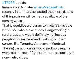 TR转PR与加拿大整体移民政策方向保持一致,逐步向偏远地区倾斜。包括: